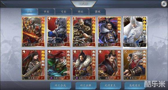 武将可以通过高级招募、碎片合成以及在英魂商店购买充值礼包获得,武将碎片可以在英魂商店、竞技商店、精英副本获得。武将通过升级,升星,进阶,佩戴装备,侍女,兵法,主城皮肤等方式培养提升战力。
