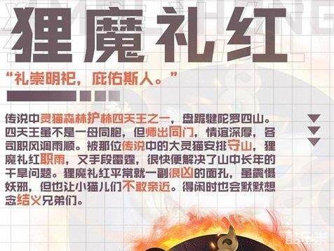 狸魔礼红是灵猫传中的一只猫,很多小伙伴对这只猫都不太了解,那么小编就给大家介绍一下这只猫,下面小编给大家带来《灵猫传》狸魔礼红图鉴一览,还不清楚的小伙伴赶紧来看看吧。