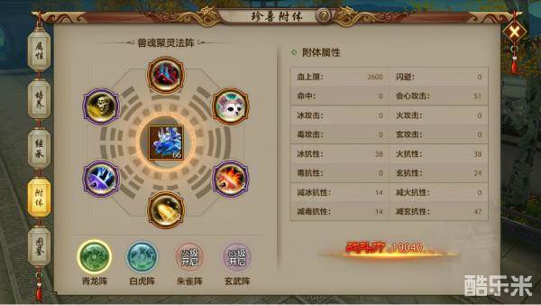 增加的是玄抗和毒抗,如果感觉不需要的话,灵兽,释玄两个技能也非常的不错。灵兽是增加会心属性,可以让峨眉的治疗技能产生会心效果,增加治疗的效果。释玄增加的玄攻击,不但可以增加技能的伤害能力,也会增加技能的治疗效果。