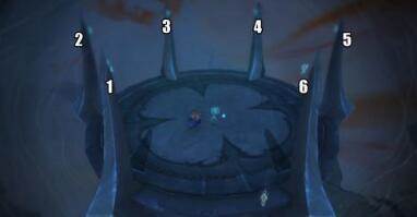 每次可以点击两个发光符文来交换位置,6个符文的顺序需要和平台边缘的6个柱子上的符文顺序一样,才算解谜成功。