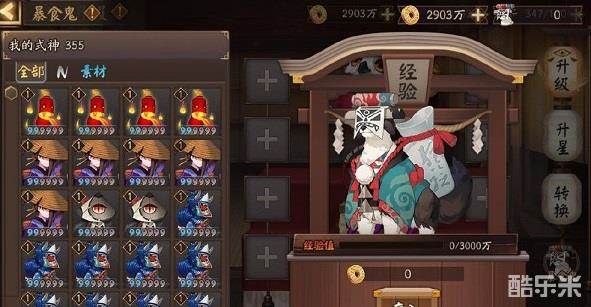 大人们可消耗大吉达摩、招福达摩、N阶式神以及对应的金币,向「暴食鬼」内存储式神经验,以供键育成系统使用。