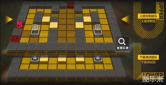 测试场地各自存在特殊的关卡实验器材,上层控制区玩家可以在实验器材的相邻位置上部署干员进行充能,且仅有上层控制区负责玩家可使用充能后的实验器材。