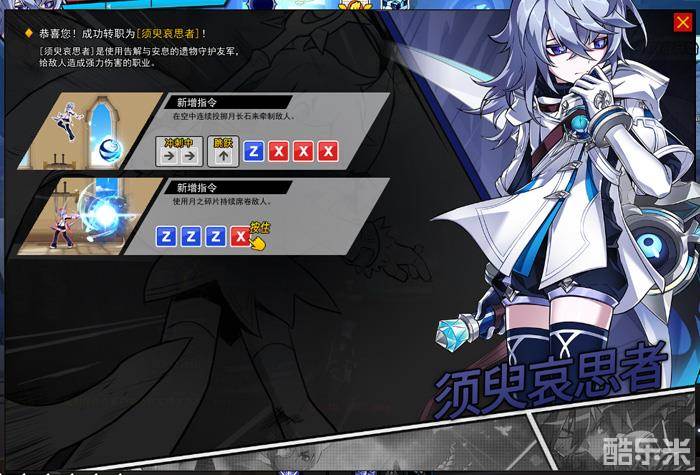 转职后的诺亚可以在邮箱内收到他的一转晋级宝箱,开启后可获得同立绘相同的装备奖励。“须臾哀思者”是心中怀有悲伤,追逐月光前进的少年,他可以使用告解与安息的遗物,通过灵活运用月之力守护友军、处置敌人来打破悲剧的枷锁。代表性的技能“宣告”,在召唤的告解的遗物周围涌现神圣的月光。能够断罪敌人的告解之光会在月光攻击的地方出现,触碰月光的友军会增加部分技能伤害。