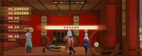 把玄武棋谱交到李淳风手里选择十八,选十八以后会过得钥匙,打开以后获得白虎棋谱,注意中间的地上有香灰捡起来然后把它放在之前装满水的盆里;