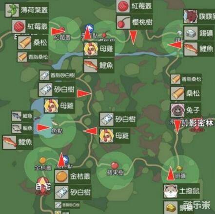 下面是朝晖森林的资源分布图,大家可以根据自己的需要进行查看。