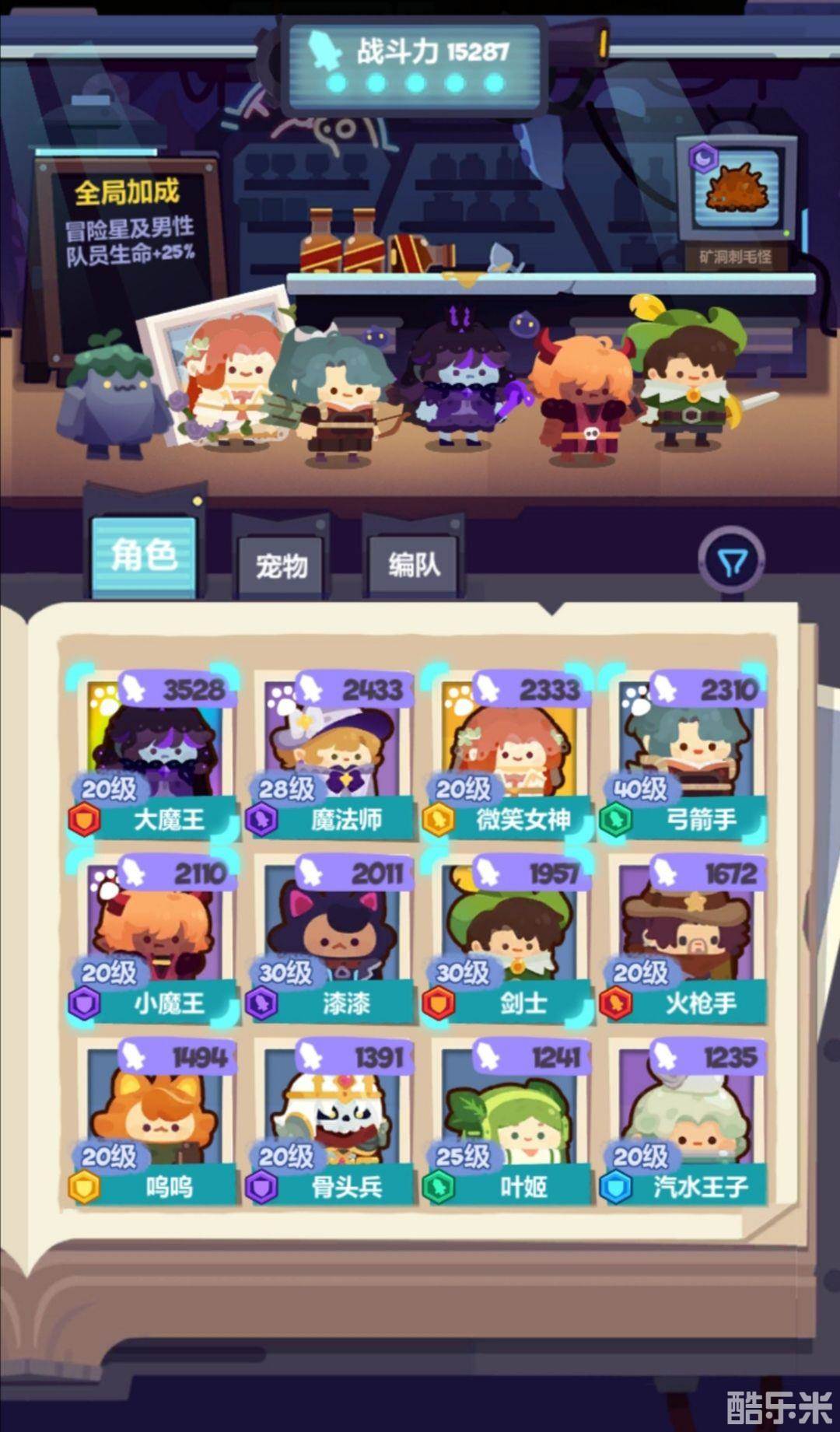 配置如图,当时我的弓箭手和微笑女神等级都没有现在高,大魔王也没有突破,所以战力要比现在低一些。