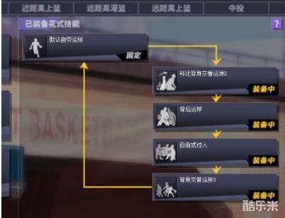 在中投的选择上我装配了背身抛射,这个技能堪称神技,因为本身PG中投作用并不大,当比赛非常焦灼的时候,你的队友被卡得死死的,时间读秒万不得已需要你来出手处理时,这个动作非常容易迷惑对手,暂时可以化解因时间转换球权的危机,不到最后一刻不要放弃。至于三分动作我没有装配,因为我觉得初始三分动作和超特的初始特殊动作是最舒服的,增加动作反而会打乱你的投篮节奏,作为PG投篮节奏是相当重要的,这决定了比赛关键时刻的致命一击,打乱节奏会使你的三分非常容易打铁,反而得不偿失。