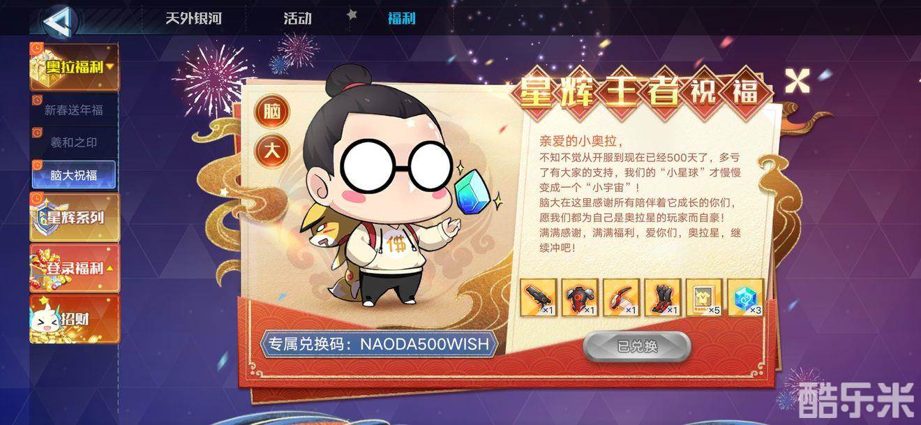 兑换码:NAODA500WISH