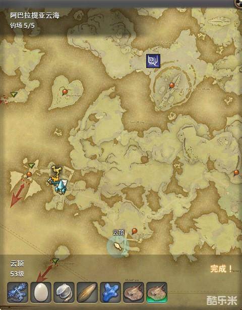 钓点在阿巴拉提亚云海的云顶钓场,坐标为:阿巴拉提亚云海 (X: 15.4, Y: 38.6)