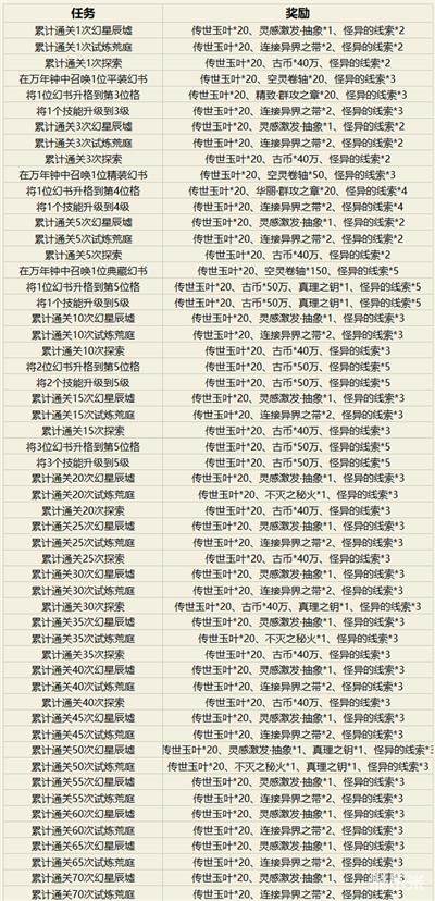 奖励共计:传世玉叶*1100、灵感激发,抽象*16、空灵卷轴*220、精致·群攻之章*20、华丽·群攻之章*20、连接异界之带*26、不灭之秘火*3、真理之钥*5、古币*700万、怪异的线索*172