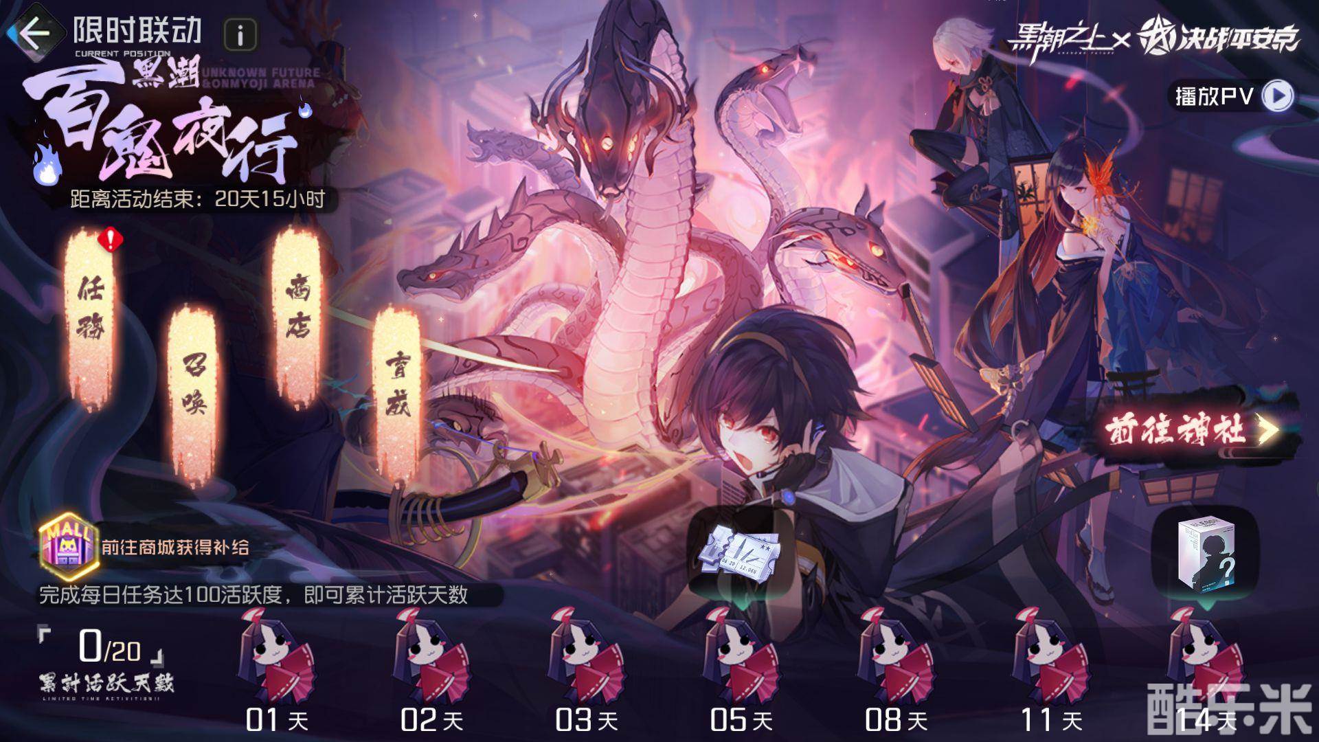 3月9日起,《黑潮之上》X《决战!平安京》联动正式开启,丰富活动内容等待着各位接触者!「百鬼夜行」线索第一章「魑魅街景」现已揭晓,参与全新策略卡牌玩法「逢魔异邦」将获得「萃灵胞玉」,兑换联动式神礼盒等超值道具!即日起至3月16日,以津真天卡池概率UP限时开启,其他两位联动式神的卡池概率UP也将随后陆续放出,助力各位接触者与式神订立契约~