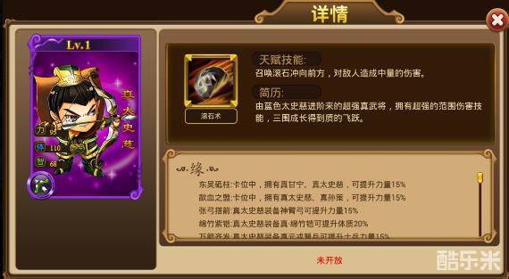东吴砥柱:卡位中,拥有真甘宁,真太史慈,可提升力量15%;