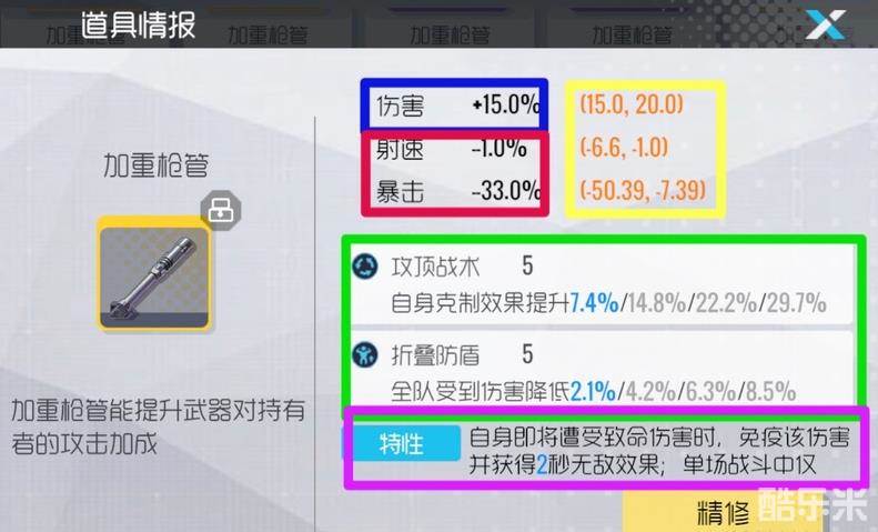 枪管:增加武器伤害,附带负属性为射速、暴击