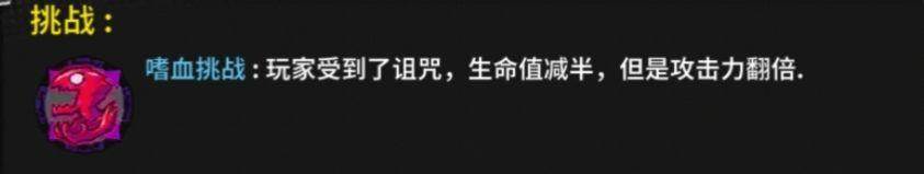3、这个挑战因子血量减半,所以例如红宝石之类回血的道具也只能回一半的生命上限。