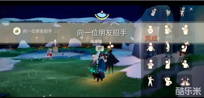 (如图向一位朋友招手就可以完成任务,第四行第二个动作做一下)