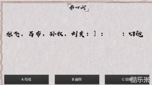 事情是这样,刚发现一个三国杀的最强大脑解谜挑战,前面都是简单文史题,解到第四问卡住了,谜面是张飞,吕布,孙权,刘备,?,黄盖,司马懿,选项有荀或、庞统、周泰三个,按我来看要不就是按阵营,要不就是按出生年份什么的,或者血量?都不成规律啊?可以回溯重答,最后蒙到了庞统,但是是为啥啊。