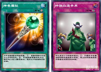 例如:「神奇魔杖」只可装备魔法师族怪兽。在装备中的情况下,发动了「种族改造手术」将怪兽变为非魔法师族,「神奇魔杖」将自动破坏送入墓地。