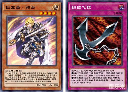 通过卡的效果,也能让怪兽卡或者陷阱卡当做装备卡使用,如「巨龙圣·骑士」「锁链飞镖」。