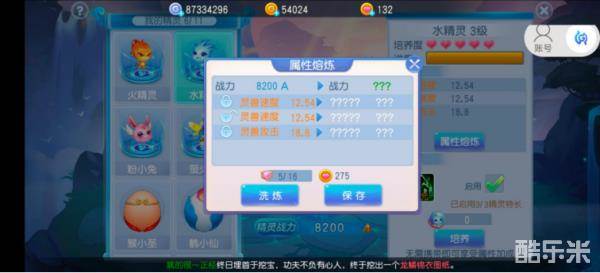 对于精灵属性来说,刚才也说到了所有属性都增加的,所以我们要全部洗炼好,争取做到全部是橙色,哪怕是你不常用的也要洗好。