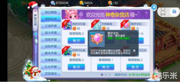 百货中有一个神奇杂货,每周都可以用金币购买十个精灵宝钻,对与平民玩家,攒一攒,多了洗一波也是美滋滋的,用桃心洗的话也是性价比比较高的。