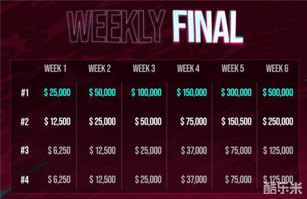 不管在之前累计的奖金有多少,第五周、第六周的超高昂奖金意味着拿下当周头名的队伍即拉近自己和最终总冠军的距离,每个队伍都需要竭尽全力抓住每一个机会,才能够将命运掌握在自己手中突出重围。
