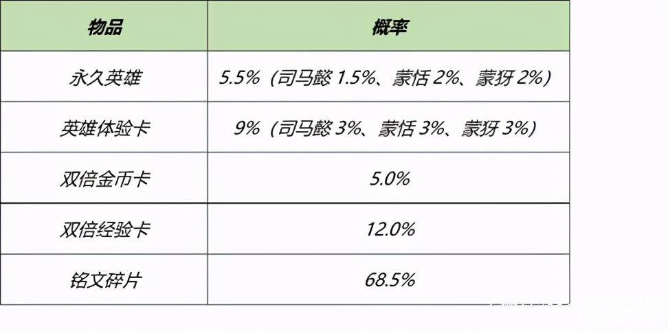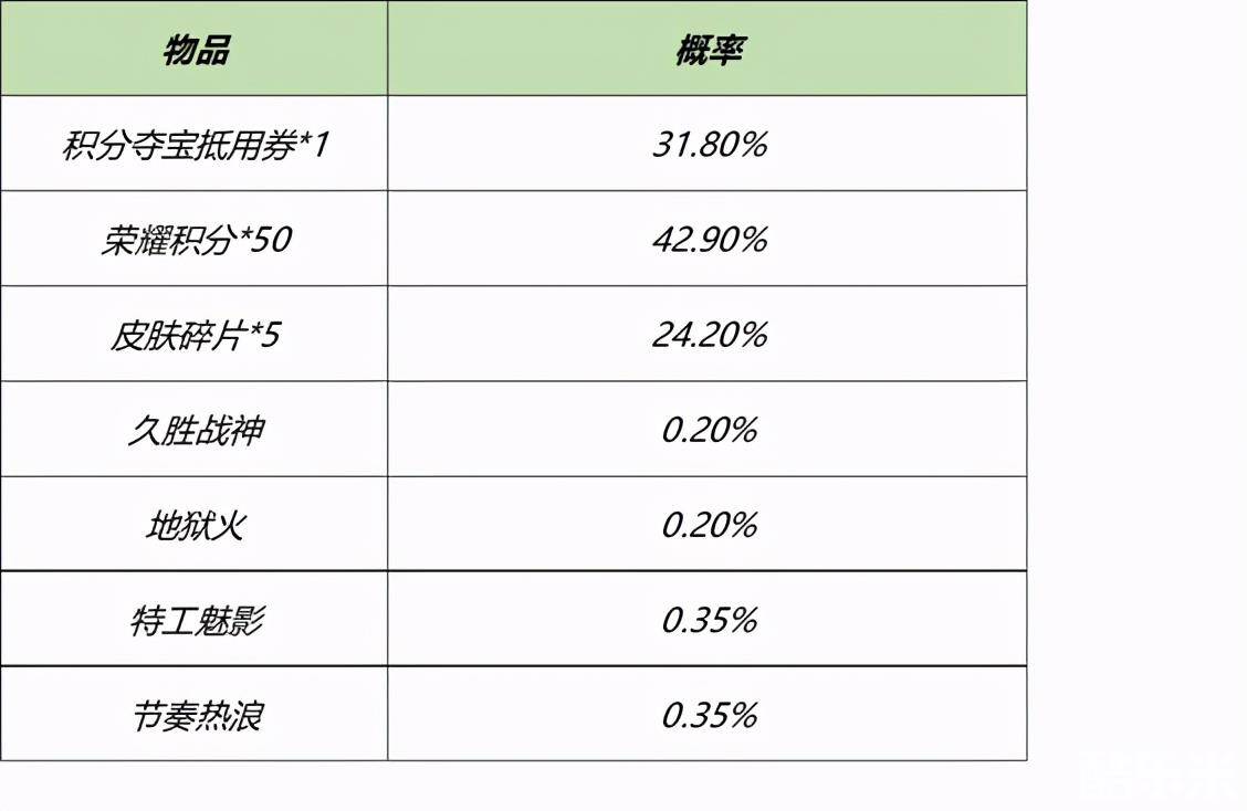 3月16日-3月19日23:59,召唤师在商城用1200金币可以随机获得奖励,奖励物品以及抽奖概率如下图。