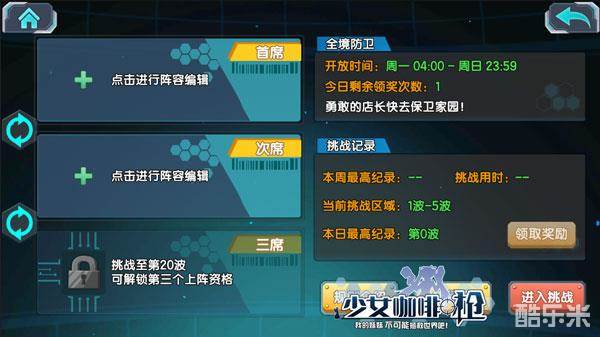 在全境防卫活动中,玩家需要进行阵容编辑。最多可以指派萌之屋的三名少女上阵并为其搭配装备,少女们的装备不能重复,到底宠谁?资源装备怎样分配?玩家可得好、好、选、择、哟!在战斗时,玩家只能操作一个少女,但可以手动切换成阵容内的其他少女,切换角色会产生2分钟的CD。萌之屋少女天团和你一起上阵打怪,助你早日登上人生巅峰!想挑战本店长吗?赶紧带上自家妹子一起闯关吧!