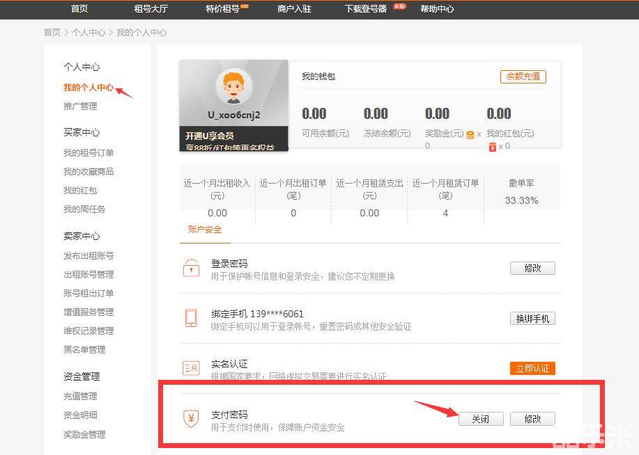 首先,进入买家中心-我的个人中心,将支付密码功能点【关闭】
