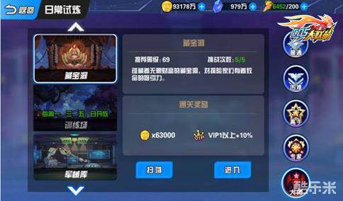 除了炼金以外,还可以通过挑战日常试炼玩法中的藏宝洞来获取大量金币。
