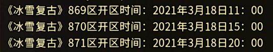 《冰雪复古》871区开启时间:2021年3月18日20:00