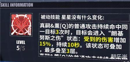三技能:两个人看星星没什么变化就能轻轻松松给予对面45%受伤增加的buff,全队可以受益。(女王三技能有75%。。)