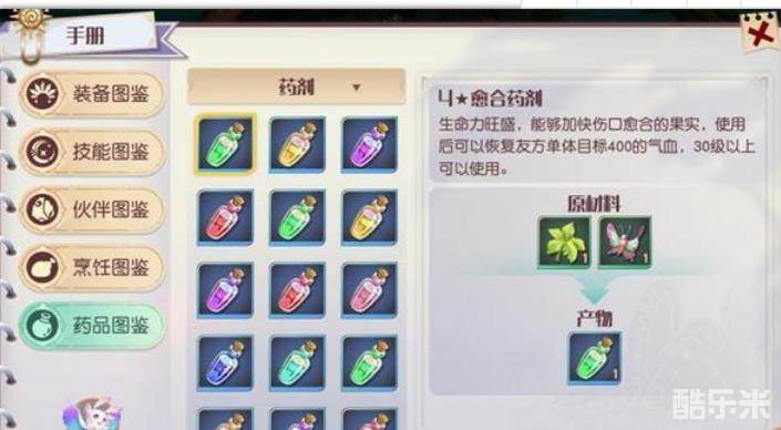 《梦想新大陆》中的药剂分为两类,一类是 战斗药剂,另一类是特效药。