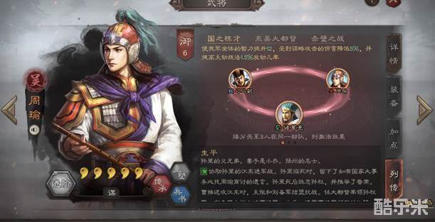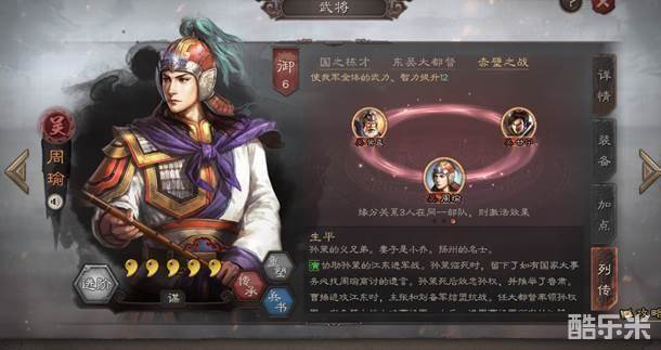 在缘分方面,周瑜可以激活三个缘分,分别是: