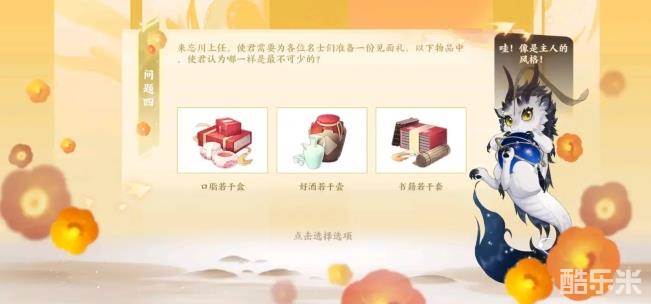 以上就是忘川风华录人物关键词问题答案 的详细介绍了,大家的选择对于游戏中的影响其实并不是那么的大,最后我们需要的人物还是需要靠抽才能够获得,所以没有必要着急。