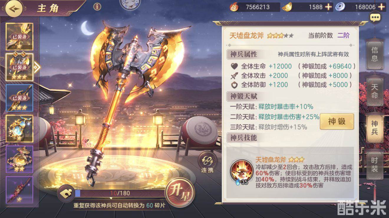 2,武将好感度均衡培养,优先碎片多的武将好感提升至5级,试炼任务也是碎片多的优先完成。后期不足的好感度可通过屯下来的温泉、食团邀请券提升。