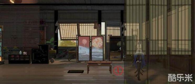 3、第一个位置就在房间屏风的中间位置,靠近就会有拾取的图标了。