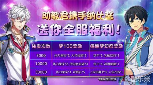 联动开启,福利先行!即刻起至8月29日14:00,参与转发@偶像梦幻祭(或@梦王国与沉睡的100王子)对应活动微博,就有机会get双重游戏福利,详情快去戳助教君吧!