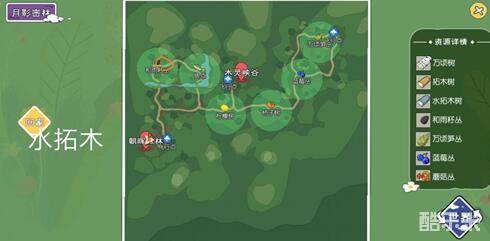 首先水拓木是只有在月影密林中才会有的,并且我们需要等到下雨天的时候才会刷新出水拓木树。