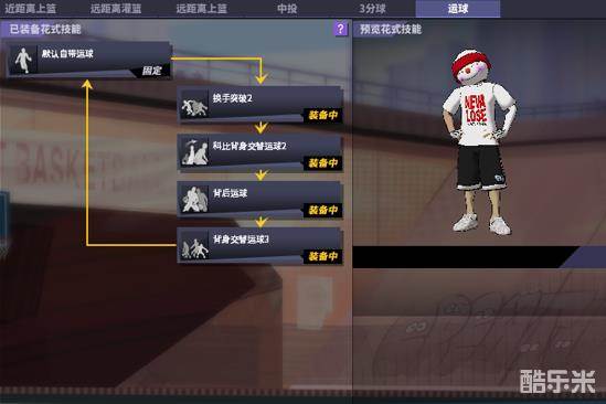 那抛开能力球,我先来讲我自己带的技能吧,首先顺序第一,换手突破2,第二,科比背身交替运球2,第三,背后运球,第三,背身交替运球3。