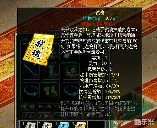 给自己的宠物使用天书散卷之后,宠物们就可以拥有相应的天书技能。但宠物天书技能等级不能超过宠物等级的1.6倍。游戏中共十九种天书技能,如魔引技能就是在物理攻击命中对手时,有一定几率造成敌方法力消耗;烈炎技能就是在物理攻击命中时,有几率同时使敌方的几个目标也受到伤害。