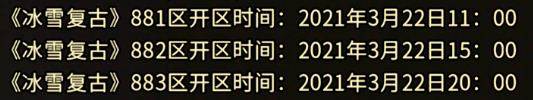 《冰雪复古》882区开启时间:2021年3月22日15:00