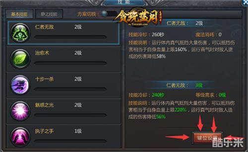 3. 由于键位只有7个,小编结合自身技能和兵鉴技能后,推荐:旋风腿,仁者项链的仁者无敌,传送戒指的十步一杀,血魄一击,金质拳的铁拳,潜行,冷酷