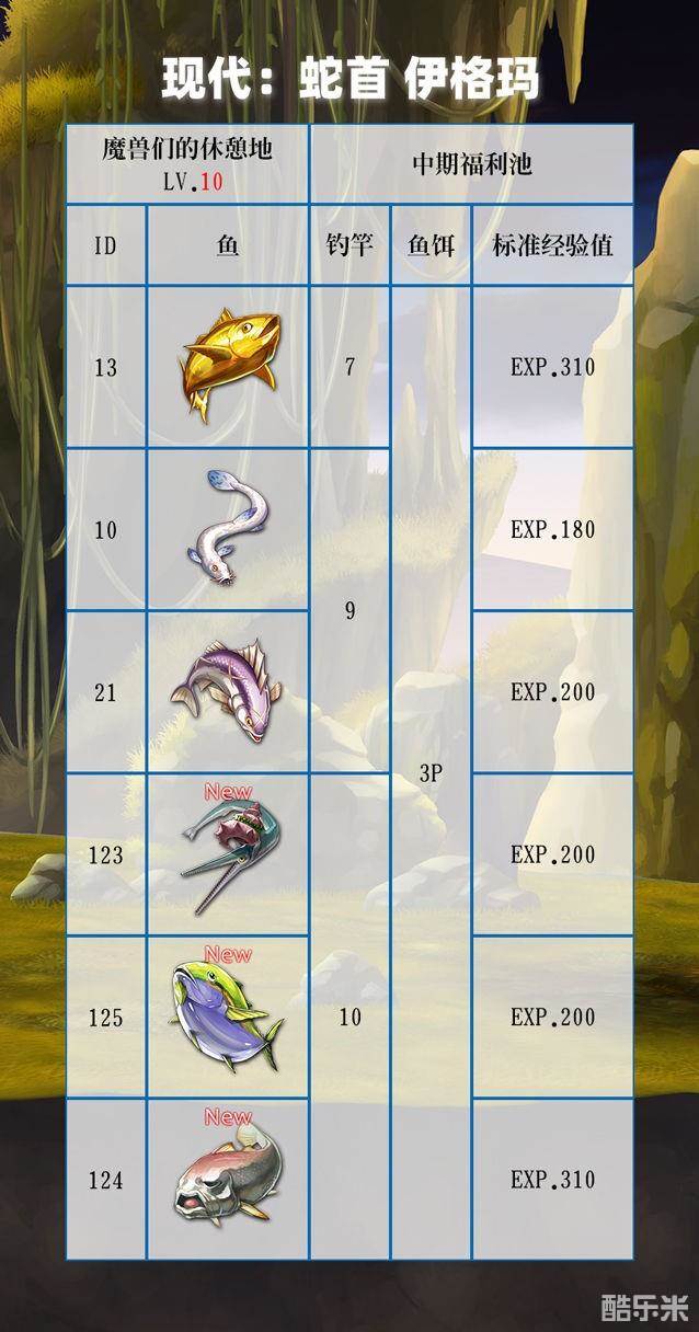 更新了四个新地图的福利鱼池此举在原有钓鱼系统的几个瓶颈期大大加速了钓竿升级的速度,并且将原有鱼池中一些基数较小的鱼类单独提取出来并放大了数量。让玩家能够更快达成150鱼的成就,获取鱼石,冲击次元钓钩。