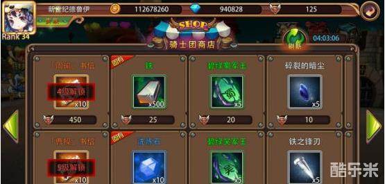 备注:商店中的一些物品是与骑士团的等级挂钩的哦!
