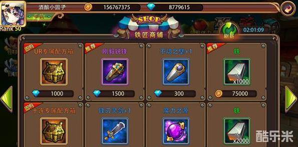铁匠铺商店:在铁匠商铺中可以金币或钻石购买武将专属配方、武将通用装备、装备加工物品。