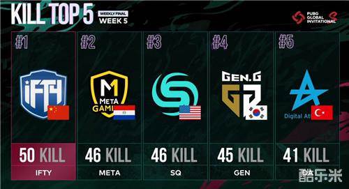 可以看到,META在淘汰榜上仅次于榜首的iFTY,以46个淘汰数名列榜眼。他们在本周的比赛前期似乎并没有什么太过于惊人的发挥,而来到最后的两场比赛中,META接连杀入决赛圈,以一个第三名、一个第四名的成绩拿到了两个极高的排名分,同时,手握全场第二淘汰分的他们也顺势拿到了周排名第二。META和GEN这两支队伍的表现也再一次提醒了所有的参赛队伍,能够在每一场比赛中都保持水准发挥,拿到稳定分数的战队才能够站在更高的位置。