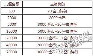 【活动内容】金币奖励满额返还,额外赠送大量空白阵符,天地水火,风雷山泽,奇门阵符,尽收囊中,一切尽在本期月末超值大放送。
