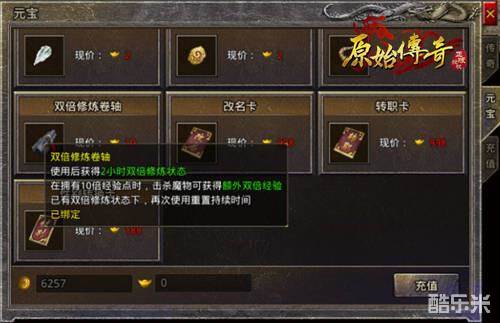 那么这时候就去商城元宝处购买一个双倍修炼卷轴,该卷轴能使打怪被10倍经验点加成获取的10倍经验再次翻倍。通俗点说就是,在有10倍经验点的且有双倍的状态下是获取20倍的打怪经验。