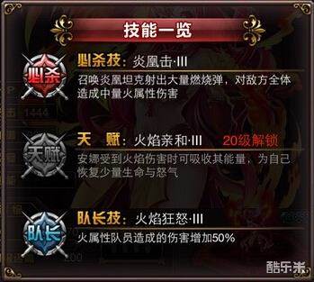 火焰亲和:安娜受到火焰伤害时可吸收其能量,为自己恢复少量生命和怒气