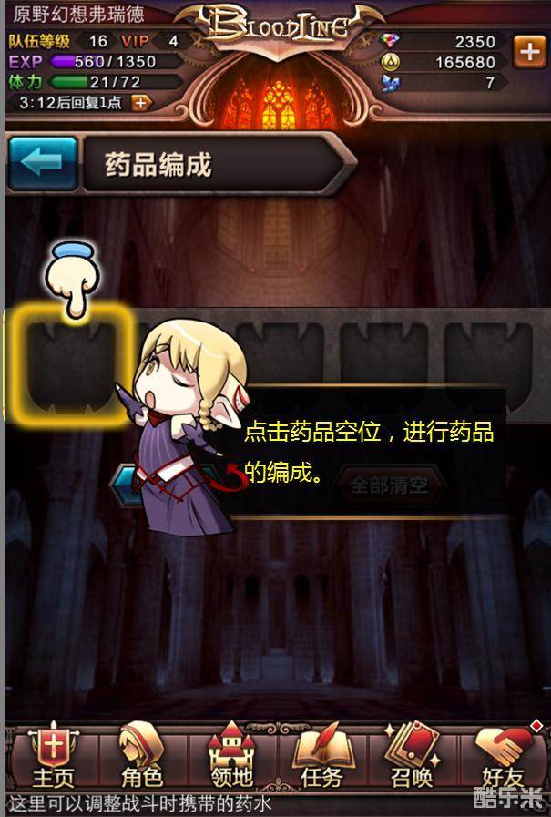 点击战斗准备界面下方的药品空位,进行药品编成。